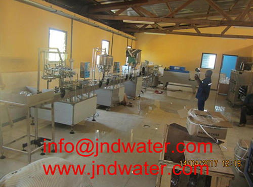 Shenzhen J & D Drinking Water installed 2000BPH bottled water lines and 600BPH 5L bottle water machines, and provided training in the factory of customer from Central African Republic.