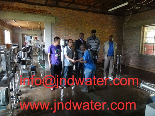 Shenzhen J&D agua potable Equipment Co., ltd. Instalar y entrenar la línea completa de jugo embotellada 2000BPH en la fábrica de clientes de Burondi